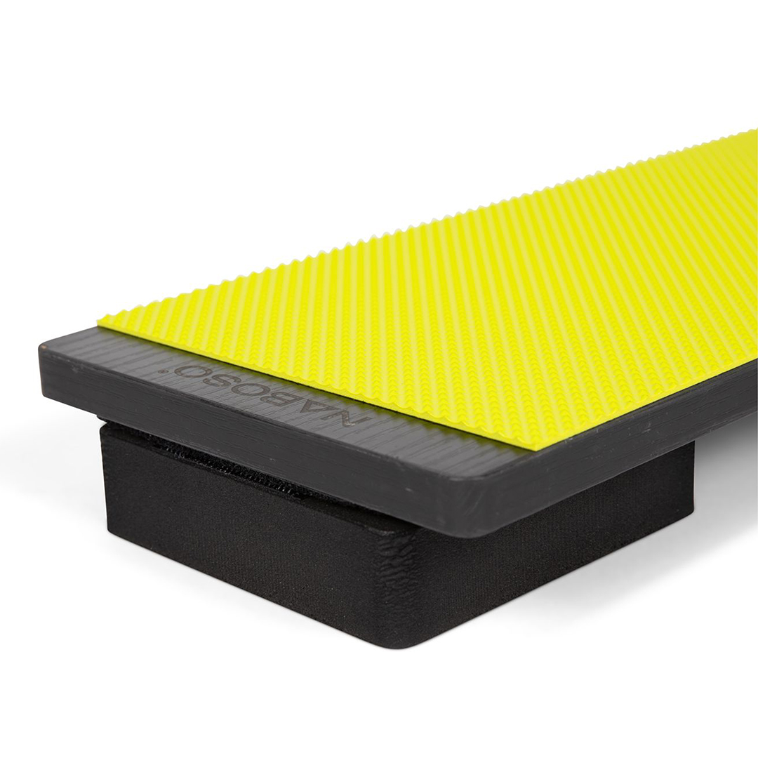 キネシスボードは、ナボソ独自のテクスチャーと、微細な揺れを作り出す「マイクロ ワブルシステム」を組み合わせ、片足でトレーニングを行えるよう設計された「シングルレッグプラットフォーム」を特長としたバランスボードです。